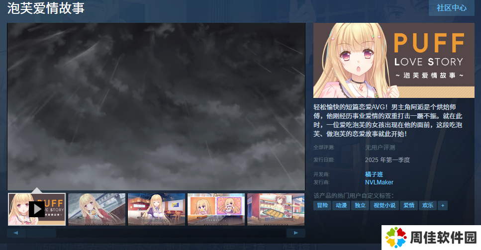 恋爱AVG新作《泡芙爱情故事》近日上架Steam,该作将于2025年第一季度发售,该作是一款短篇的视觉小说。