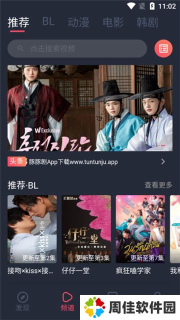 1、在豚豚剧app的“频道”页面的搜索框中,搜索自己想看的剧或者电影、综艺。