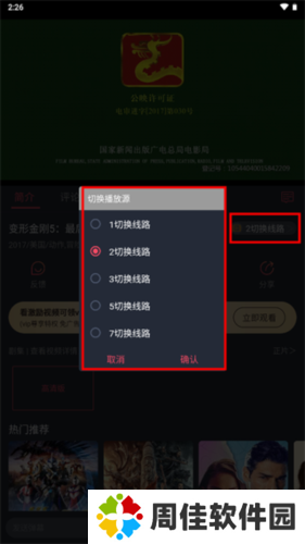 3、如果加载速度过慢,可以点击线路切换,点击“确认”即可。