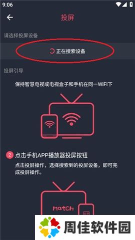 5、点击投屏,需要保持电视盒子和手机在同一WiFi下,点击投屏操作,选择搜索到的投屏设备,即可完成投屏操作。