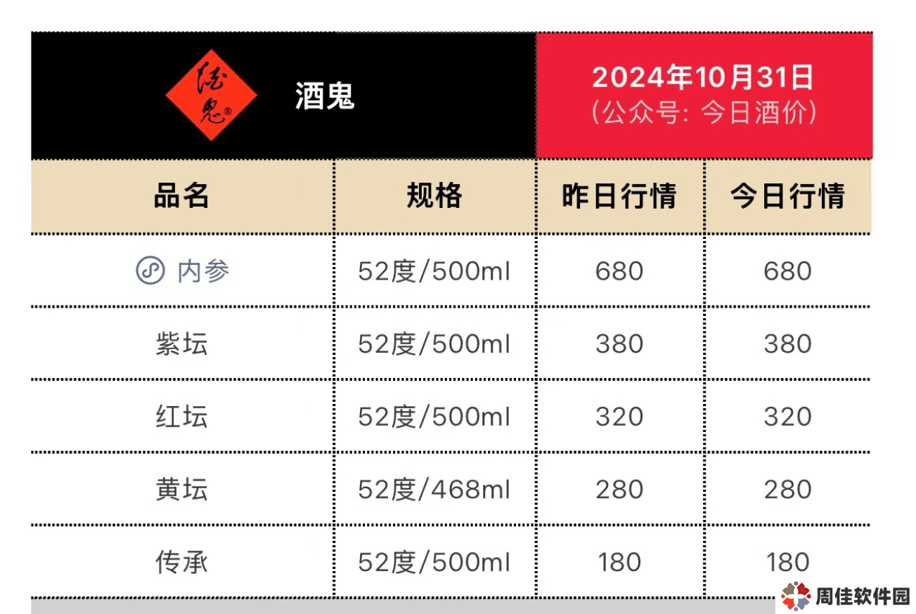据今日酒价数据,52度/500ml内参的批发参考价,由7月1日的850元降低至9月30日的810元,10月31日,内参批发参考价已为680元。搜索发现,当前酒鬼酒京东旗舰店内,标价1499元的内参酒到手价为829元。