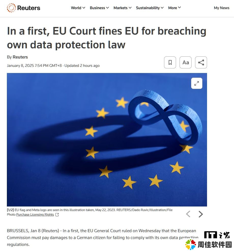 本站 1 月 8 日消息,据路透社报道,欧盟普通法院今日首次作出裁定,要求欧盟委员会向一名德国公民支付赔偿,因其未遵守其自身的数据保护规定。