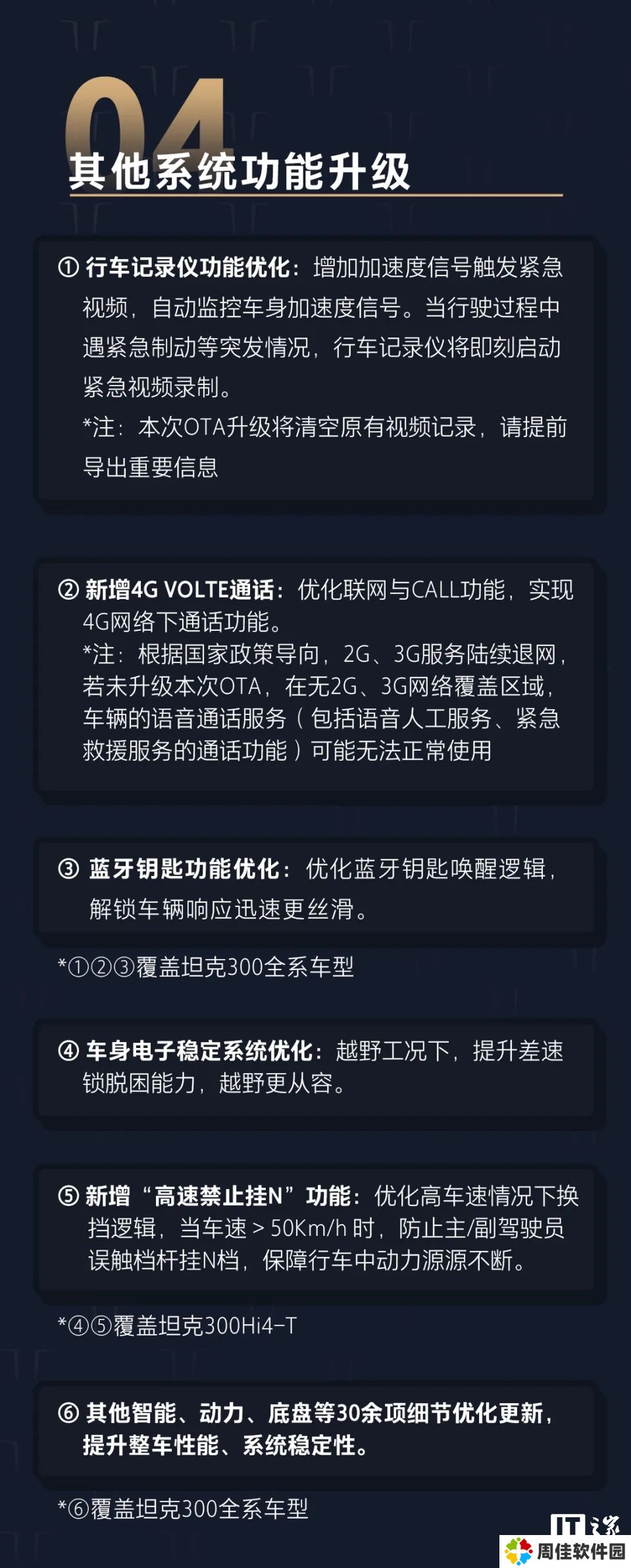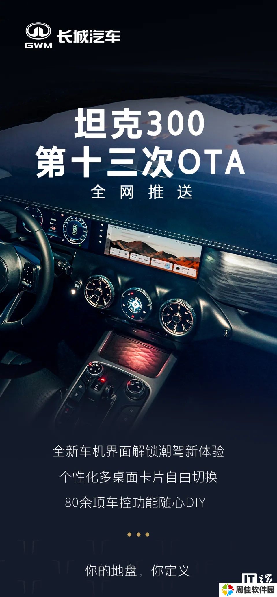 本站 1 月 8 日消息,长城汽车今日宣布,坦克 300 第 13 次 OTA 全网推送。