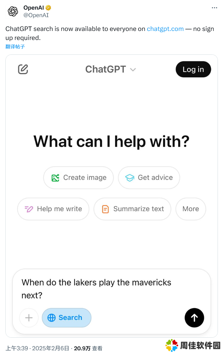 本站 2 月 6 日消息,OpenAI 今日凌晨宣布,ChatGPT 现在无需登录账户即可使用其搜索引擎。这项升级后的服务不仅能基于实时网络信息生成答案,还会同步展示信息来源清单,让结果更具可信度。