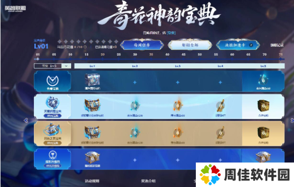 解锁升级包并完成任务提升宝典等级,共计可获得11个随机炫彩宝箱,4个随机红色/粉色炫彩宝箱以及1个随机绿色炫彩宝箱。